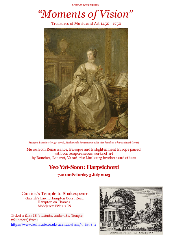 Yat-Soon Yeo returns to Garrick's Temple to illustrate connections between art and music over several centuries. Click HERE for further information.
